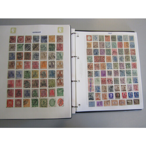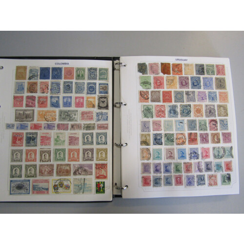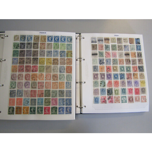 WORLD ALL DIFFERENT - Collection in six well filled four ring binders with heaps of Avon Plus album pages. Covers the world A to Z mixed mint and used from middle to modern periods, each page well filled from commoner thematic issues to 1940s-60s defins and commems covers Europe, Asia (no China), Middle East, Americas, plus many more, odd earlier 19th century incl Turkey, Spain etc. Must be 5000++ all different here.