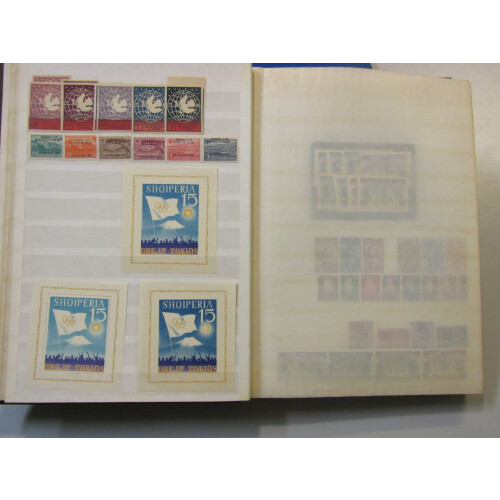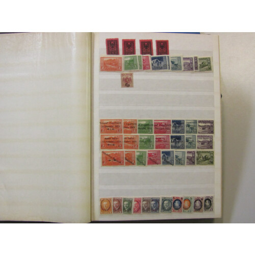 Stockbook with better mint sets and some used ranges noted 1925 Return set m, Proclamation set m, Republika ovpt set m, 1929 King Zog Birthday set mint (Cat £162), 1938 Royal Wedding set 8 mint (Cat £43), 1945 Red Cross surcharge set 4 mint (Cat £87), 1946 Assembly ovpt set m (Cat £52), 1950 air set m (Cat £50), 1964 Olympic Games M/S both perf & imperf mint, plus ranges of commems, STC £925, useful assembly,