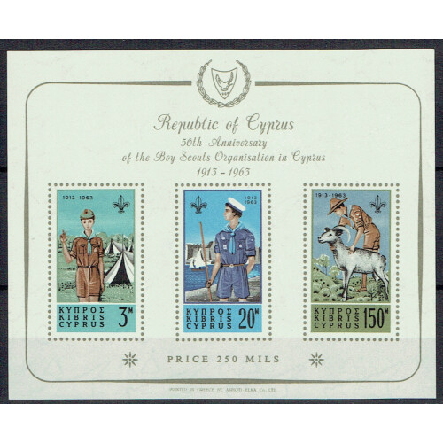 1963 50th Anniversary of Cyprus Scout Movement miniature sheet imperf & unmounted mint, SG MS231a.