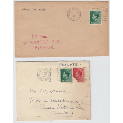 1936 King Edward VIII 1 Sept typed fdc with ½d, 1½d and 2½d and ½d green on fdc with block of four 1½d brown on reg. fdc