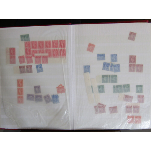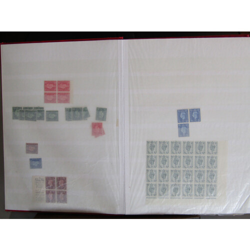 GVI - QEII Mint & U/M duplicated jumbled ranges in a large stockbook with better noted incl 1937 to 11d, ½d green wmk inverted, 1½d advert pane wmk inv (Cat £140), 2½d ultr. swys wmk (Cat £75), 4d blk of 24, 1941 1d pale scarlet swys wmk block of 4 (2), 2d orange swys wmk, 1952 Wildings in various blocks, 2d wmk inv (4 cat £30 each), 11d in cyl. blk of 6, dozens for different printings in blocks, pairs, singles, wmk varieties incl some Graphite printings incl 1958-61 1d 3 lines (Cat £65), 1½d (Cat £90), 2d blk of 4, blk of 6 (2), cat £10 each, 2½d strip of 3, 1960 booklet panes and good range of inverted wmks, etc, 100s, useful lot, needs sorting out.