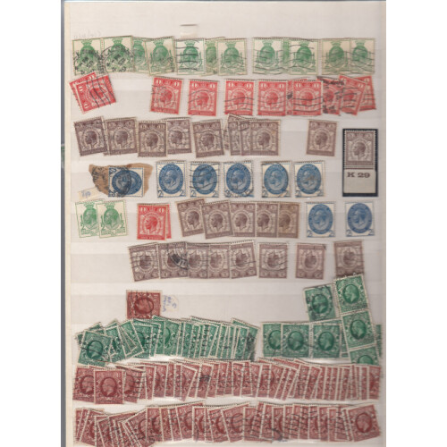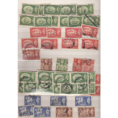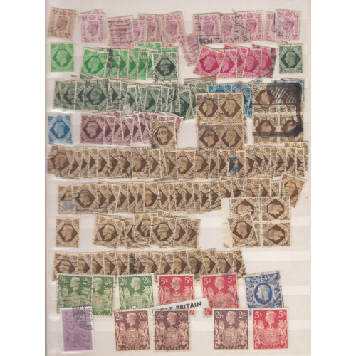 Stockbook with a mainly used duplicated range from EDVII to 1951, some better fine used noted EDVII to 1s, 2/6 lilac (4 used with faults), 5s (2 one with cork cancel), GV Seahorses 2/6 (6), 5s red used in Turkey, 1924 2½d blk of 6 mint, 1924/25 Wembley sets, GVI 2/6, 5s, mint, 1951 to £1 used, 100s.
