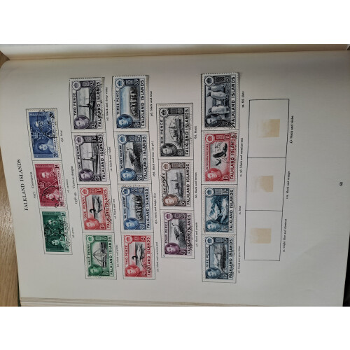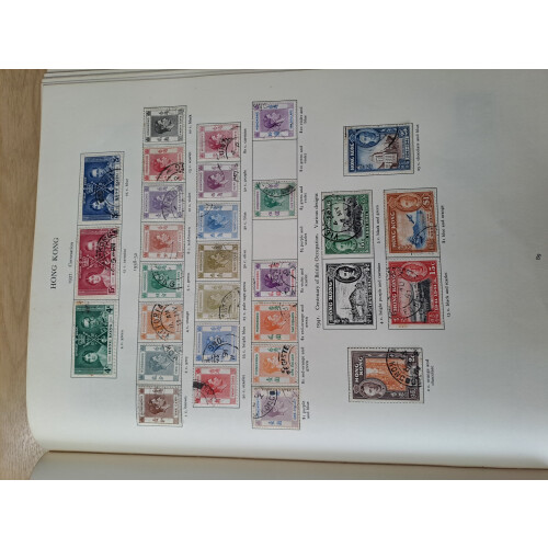 British Commonwealth - King GVI Printed album with a useful fine used collection with better noted including 1949 UPU possibly complete (STC £750), some of the cheaper 1948 RSW sets complete, Falkland Islands 1938 set to 2/6, Dependencies Thick Map set, Hong Kong to $10 defins etc, lots of complete sets cat up to £50 or more, well filled album ideal for continuation, 100s. Good cat value.