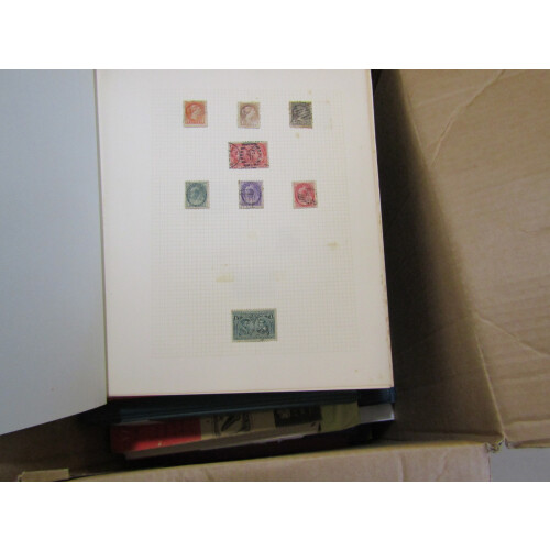 Collector's Clearout: A hefty accumulation in five well filled boxes mainly commoner Great Britain in stockbooks, empty albums and binders, Vatican City FDCs and stamp sets mint & used, GB FDCs duplicated stock of Havering 1980s issues, Canada, worldwide in junior type albums. Heavy lot!