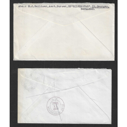 1952 (5 Sept) S.S. Silverstar typed cvr to Germany bearing 2½d light blue & sepia-black strip of 4 and 1/6 brown tied large violet SHIP MAIL / NASSAU cds's, with small blue label MAILED ON BOARD CRUISE LINER SS SILVERSTAR tied by similar Panama RP h/s. Attractive cover.