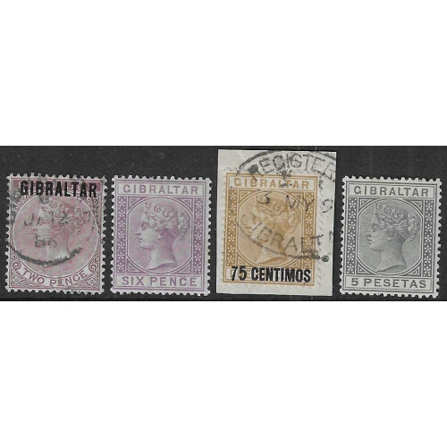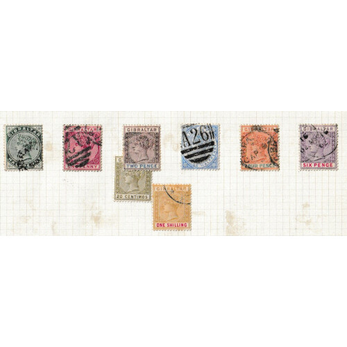 1886-1898 Collection on leaves noted 1886 to 2½d used (Cat £110), 1886-7 set to 6d m 7 u (Cat £270), 1889 surch set 7 m & u (Cat £210), 1889-96 to 5p m & u, 1898 set 7 used, useful, STC £825. (37).