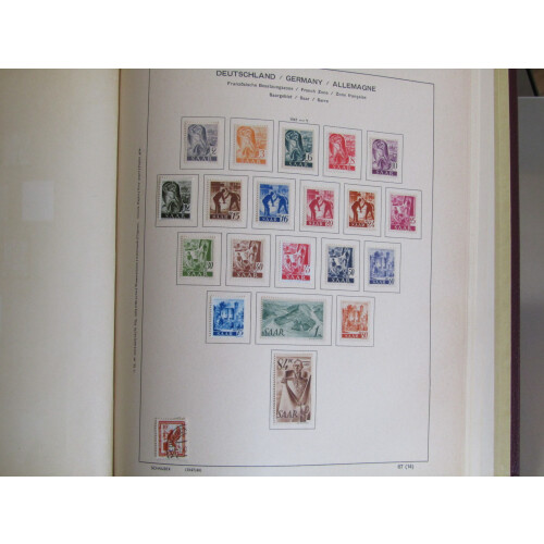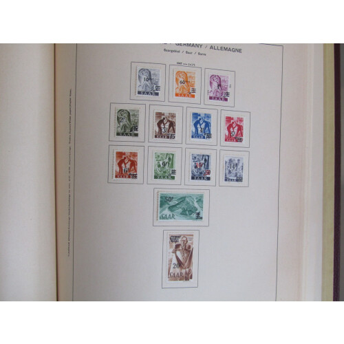 1947-1959 Attractive mint and unmounted mint collection good degree of completion in Schaubek printed album noted 1947 set 20 m, 1947 set 13 white paper, 1948 set 16 U/M (Cat £110), 1948 Flood Disaster set 4 + air U/M (Cat £77), 1949 Horse Day set U/M, 1949 Nat Relief set U/M (Cat £140), 1949-51 to 100f u/m, 1950 Stamp Day (Cat £130), 1950 Council of Europe set 2 U/M (Cat £285), 1950 Nat. Relief set U/M (Cat £90), 1951 Nat. Relief Fund, 1952 Views set, 1957 Heuss both sets mint, commems to 1959 mint, Officials 1949 set U/M (Cat £190), etc, huge catalogue value. 100s.
