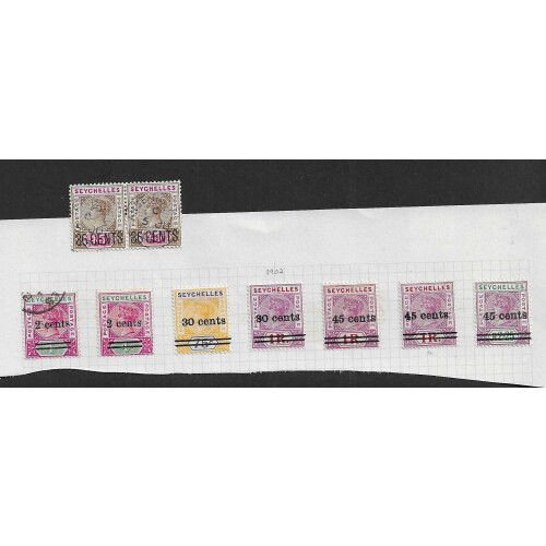 1890-1902 QV Collection presented on a single album page Notable stamps 1890 mounted mint 90c on 96c (SG8), 1893 mixed mint and used set (SG15/21), 1900 2r.25 Bright Mauve and Green (SG36) fine used. nice lot.