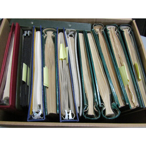 Ex-estate lot in a large archive box from a large collector's lifetime world collection. Amongst others mainly in albums, stockbooks some are well filled with country sections noted British Commonwealth, thematics in well filled binders incl Ships / Maritime, too much to list here, viewing advised. Plenty to go at here ideal for fairs dealer or ambitious collector. 1000s.