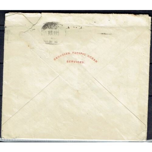 Maritime: MAILED ON THE HIGH SEAS / EXEMPT FROM WAR TAX 1919 (23 Aug) Tatty cover bearing GB GV defins ½d & 1d tied QUEBEC slogan cancel addr to England with two line exempt h/s in black on obverse. Canadian Pacific Services envelope printed on reverse.