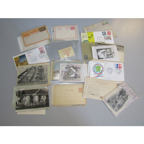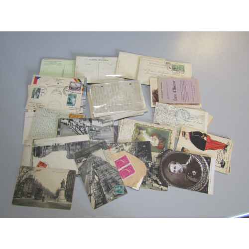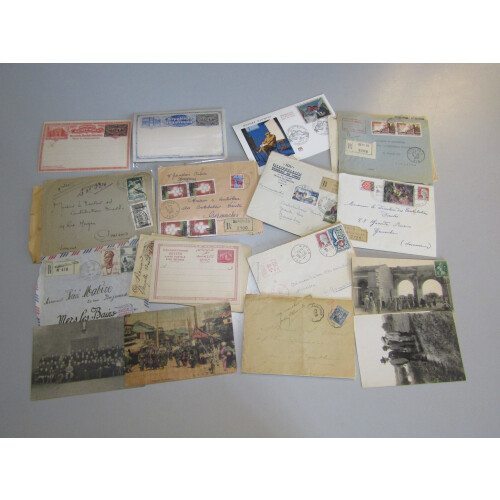 Worldwide covers small accumulation from 19th century onwards odd better throughout including Edwardian postcards, Belgium P/S cards unused, P/S cards used from Germany, Austria, Switzerland, France, Denmark, Egypt, Lagos, Italy, Corps Expeditionaire de Madagascar, French turn of the century postcards, Reunion 1970s commercial mail, Byrd 1933 Antarctic Exped., 1958 Great Barrier Is. Pigeongram, Japan wood postcard etc, good qty.