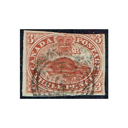 1852 3d brown-red Beaver: Three margins used neat concentric circles cancel cut into along the top showing clear Major re-entry variety (line through EE PEN), SG 8b. Cat £950.