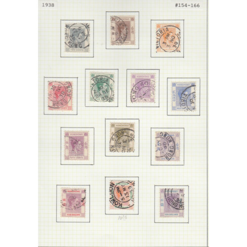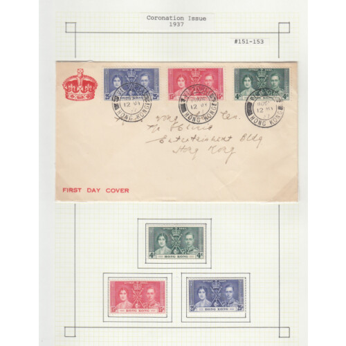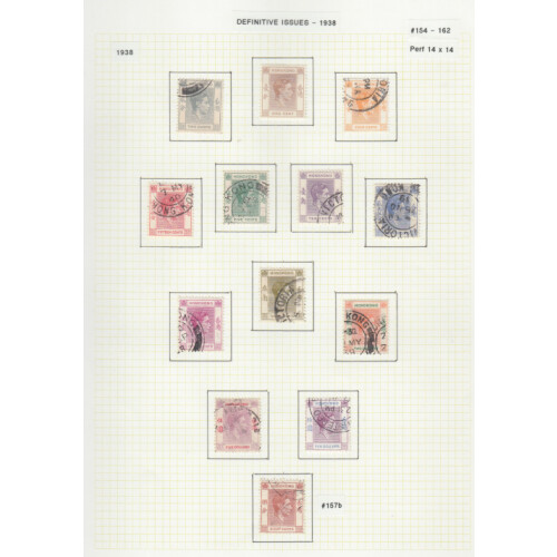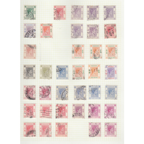 1937-1950 George VI collection on leaves with useful content throughout including 1937 Coronation set on illus FDC, 1938-52 good range of values to $10 (Chalky $10 x 5 extras Cat £90), 1946 $10 vfu, 1941 Cent. set used, 1946 Cover sent locally FDC for reopening of HK P.O following liberation 28 SP 1945, good quantity with many extras, high cat value.