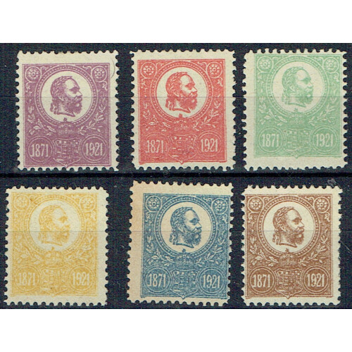 1871-1921 Franz Joseph 30 year Anniversary for the first stamps issued in same design on six different examples in different colours mounted mint. Issued privately for a Stamp Show.