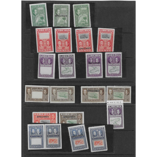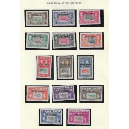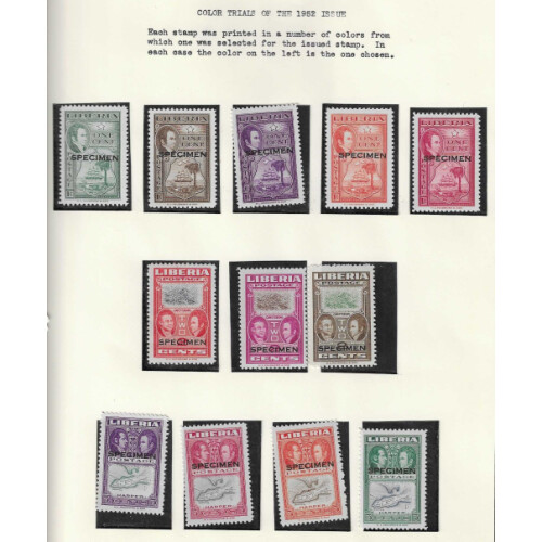 Colour Trials, proofs and Specimen overprints of 1950-52 issues includes 1952 colour trials (53), imperfs with vignette omitted Ashmun & James Monroe reversed vignette colour error, 1949 Jehudi Ashmun colour progressive proofs (78) plus three sheetlets signed by the designer, interesting and attractive collection.
