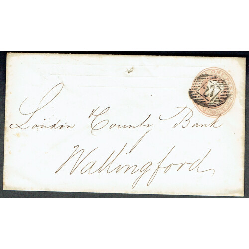 1857 (4 Mar) London & Westminster Bank embossed 1d pink postal stationery envelope cancelled 27 London postmark and Wallingford arrival b/s.