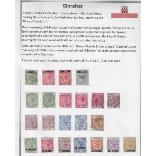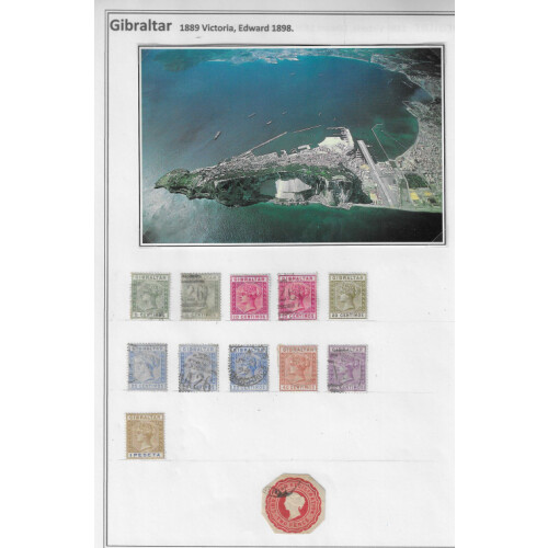 Collection QV-QEII of approx. 430 stamps, mainly mint and used (earlier) neatly arranged on leaves in display sleeves includes (some stuck to pages) 1886 1d mint (Cat £85), 1889 surcharge set mint / unused (Cat £200), 1898 ½d green, 1d, 2½d mint (Cat £76), GV to 2s mint (2 diff cat £40), 1938 GVI to 5s mint (Cat £50+), 1953 to 2s mint, 1966 Aerial Ropeway special cvr, etc. (c.430).