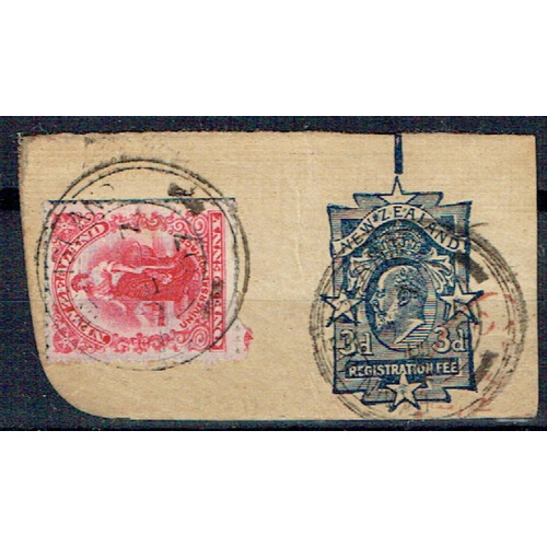 Fanning Island: 1907 small postal stationery piece of EDVII 3d blue uprated with NZ 1d universal and two strikes of FANNING ISLAND 1907 cds cancels. Fine.