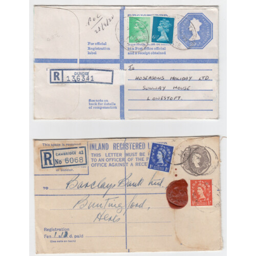 A selection of fifty-five Queen Elizabeth II used registered letters a mix of pre-decimal and decimal includes values interesting postmark interest includes, Kilmarnock, Glasgow and Sutton Hill.
