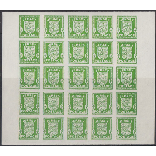 1941 Arms ½d green and 1d red both in imperf panes of 25 unmounted mint on white paper, attractive forgeries. (50). Cat £225 a pair as genuine.