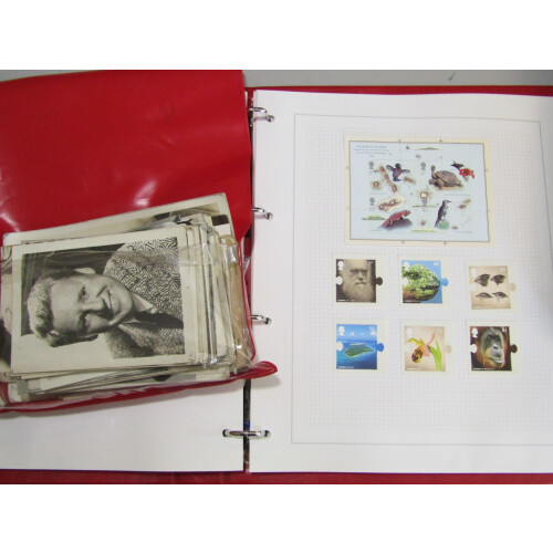Mixed lot with Junior Album binder with collection of GB mint commems from 2002, bundle of photos of various film stars, artistes & celebrities some signed, GB Greetings booklets (3) & further binder of GB face from 1990