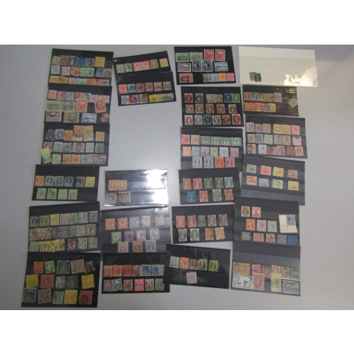 A useful assembly on 40+ stockcards from an ex collector's estate, mint and used very mixed includes Queensland Chalon heads to 5s (incl fiscal used), NSW 1854 1d orange pair imperf, values to 5s, W. Australia 1884 ½d on 1d mint, Tasmania Chalons perf and imperf to 1s, Views, S. Australia to 1s brown, 2s red, Victoria Stamp Duty 5s & £1 orange, 1854 1s blue imperf, poor to fine.