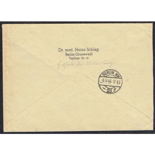 Storkow: 1946 (30 March) Printed Heinz Schlag multi franked philatelic envelope bearing six different perf Storkow Stork issues along with three Zones defins each tied STORKOW (MARK) / Waldern special cancels regd to Berlin.