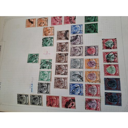 Collection in an old time Paragon album mint and used with good range of different areas QV to 1950s, some values to $5, mainly GVI period, plus Jap. Occup issues, FMS Tigers etc, nice original lot.