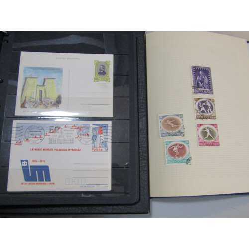 Carton with chiefly used duplicated accumulation from early to mid 20th century issues on leaves, stocksheets and in two sparsely filled binders. (qty)
