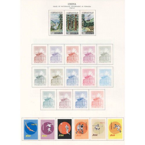 1959-1973 Mint collection on well filled Scott printed pages includes many sets and miniature sheets including 1960 Inauguration of Cross Island Highway M/S (SG MS 354a (vertical bend, cat £200), 1960 Forestry M/S, 1960 Chinese Paintings set (Cat £49), Art Treasures sets, 1964 Cacti, Reservoir, 1965 Double Carp set (unused, cat £285), Chinese Women set 2 (Cat £50), 1966 Paintings set (Cat £95), 1967 Birds set (Cat £55), 1968 Cathay set, 1968 Year of the Cock, 1969 Paintings, 1970 12 Months set (Cat £100), 1971 Dogs set (Cat £110), 1973 Horses set & M/S (Cat £90), etc, useful collection for expansion.