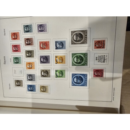 A heavy accumulation of country collections for stamps and covers includes St Helena GVI 3d ultramarine mint, Br. Antarctic Terr FDCs and survey cover from 1960s-80s, Falkland Is FDCs and regional covers, German Colonies mint Mariana Is & Marshall Is, Italy mint collection on printed hingeless leaves (binder is damaged), Bavaria & Danzig, Switzerland fine used collection a fine Lighthouse printed album, West Germany 1950s mint in printed album. Heavy lot in nine stockbooks and albums.