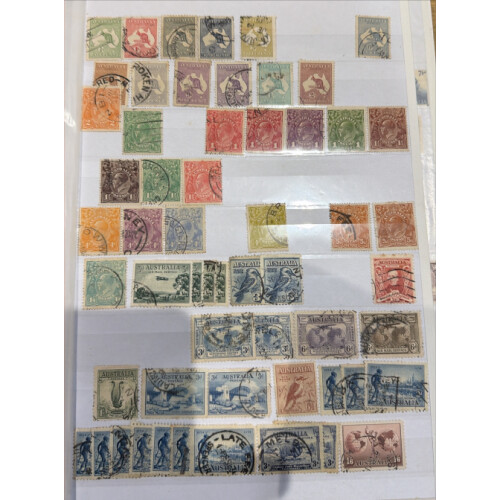British Commonwealth ranges jumbled in a stockbook with better Australia Roos to 10s, GV Heads to 1/4d duplicated, New Zealand imperf and perf Chalons for QV printings in very mixed condition but noted 1s green (4), Tasmania Chalons perf and imperf etc, very, very mixed but good cat lot.