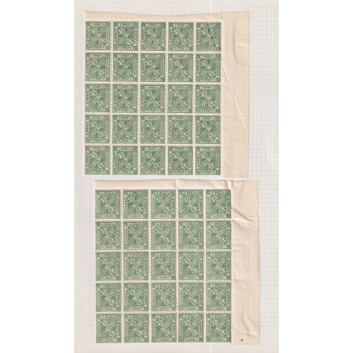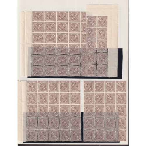 Wurttemburg: Officials No wmk; Mint blocks on four album pages includes 1881 20pf ultramarine in blocks of 30 (2), 15, 5 (2) (Michel 204a cat €2.50 each, €212), 1890 3pf brown in multiples of 30, 25, 20, 10 (Michel 208 cat €4 each, €340), 5pf green in blocks of 25 (3 blocks) & block of 10 (Michel 209 cat €6 each, €510), 1902 40pf black and carmine blocks of 10 (3), block 8, blocks of 15 (3) cat €6 each, €498). Few affixed with the margins otherwise fine and fresh. Cat €1560.