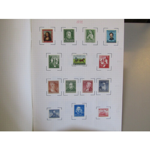 1949 - 1966 Very fresh hinged mint collection housed in an attractive stationery book including most of the key items and sets of the period including 1949 Parliament, Relief Fund, 1950 Bach, 1951 St. Mary's Church, Roentgren, Posthorns set to 90pf, National Ex, Relief Fund, 1952, Youth Hostels, Relief Fund, Telephone, 1953 complete incl. Transport set, 1954 set to 3Dm, 1954/5 complete Lufthansa set (this f/u), thereon looks complete to 1966. Useful lot with high cat val.