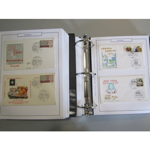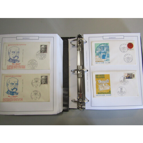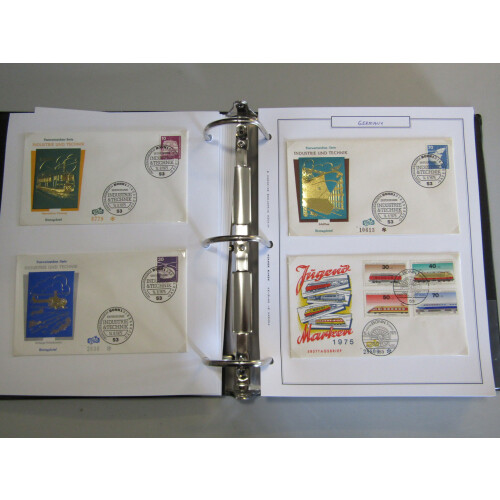 1963-1977 First Day Covers collection three binders neatly presented on pages, with a large quantity each with complete set tied by special cancels, many thematics incl early 1973 Bird set (Cat €45). Approx. 400 all different.