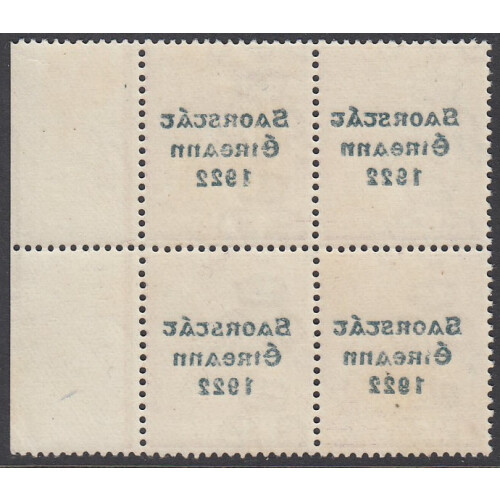 1922-23 Thom Saorstat 6d reddish purple in a superb unmounted mint right marginal block of 4 showing full offset on reverse variety, very fine. SG 60 var.