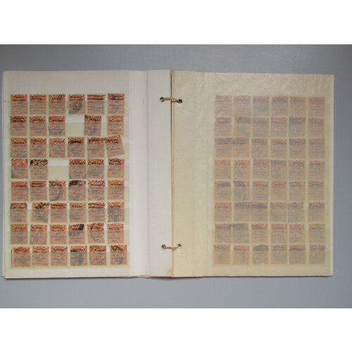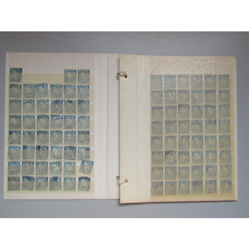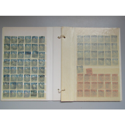 1923 1s light blue used duplicated stock of 200+ examples, mainly sound, unchecked for inverted wmks. Cat £1700+.