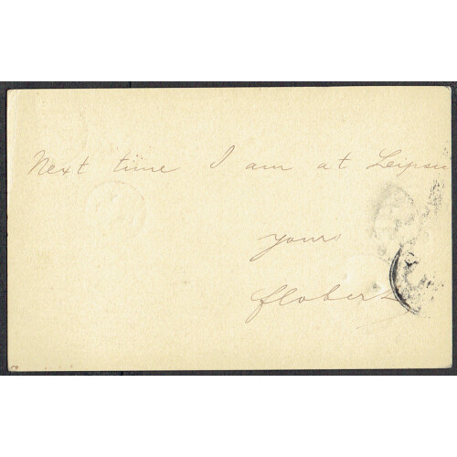 1893 1½d brown postal stationery card (CP4) Lagos to Leipzig (Senf philatelic sending), with London transit in red. Leipzig arrival cds on obv., fine.