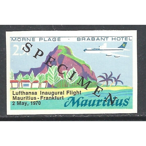 1970. 25c & 50c Lufthansa Inaugural Flight. The two values 'Imperforate', overprinted 'SPECIMEN'. Post Office fresh Unmounted Mint Very scarce and attractive Proofs. SG415/16var.