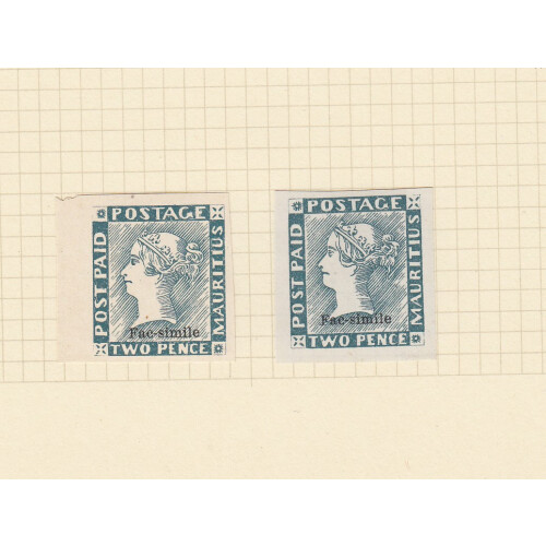 Collection on leaves mint and used including useful content noted Mauritius 1965 Birds set m, 1953 set to R10 fine used, set to R10 mint, 1953 Coronation in DLR imprint strip 4 m, plate 1B 2B & 1a 2A m & u blks of 4, 1950 vals to R10 f.u., 1946 Victory set on FDC, 1938 to R10 used, 1937 Coronation set on FDC, 1935 SJ set m, few earlier QV plus facsimiles of the scarce imperfs (6). Useful ranges mainly fine.