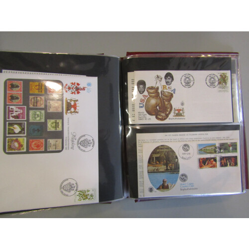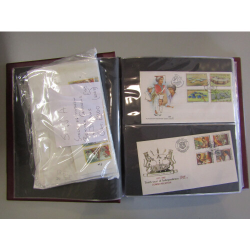 AND HOMELANDS: First Day Covers and mint ranges in xx binders including many attractive thematic sets, noted RSA 1975-89, Venda 1980-1990 FDCs, Bophuthatswana 1977-1987, Ciskei 1981-1990, Transkei 1976-1989, then mint sets in stockbooks incl Transkei 1983 long set to R2, 1991 Astronomy long set to R5, Venda mint, RSA mint stockbook with nice M/S's, SWA mint in packets (STC £900), also box of Lighthouse hingeless printed leaves. Attractive lot.