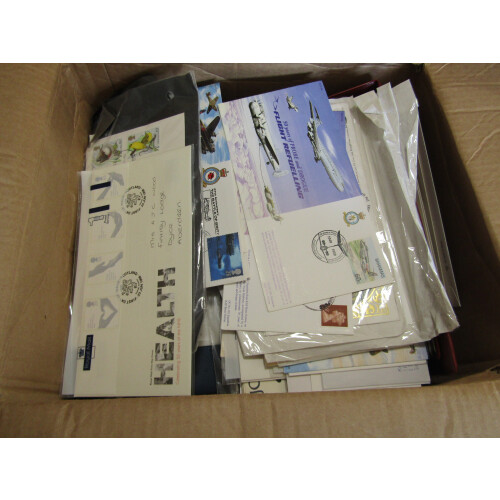 First Day covers accumulation in cover album and loose including five House of Lords cds cancels, 1960s to modern, prestige booklet panes, high face values, NVI panes etc. 100s.