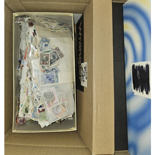 FULL TO THE BRIM CARTON - an ultimate sorter lot of 1000s of on and off paper in three overfull shoeboxes, one all off paper W/W, second all on paper, third GLORY BOX of stockcards, packets and loose. 1000s.