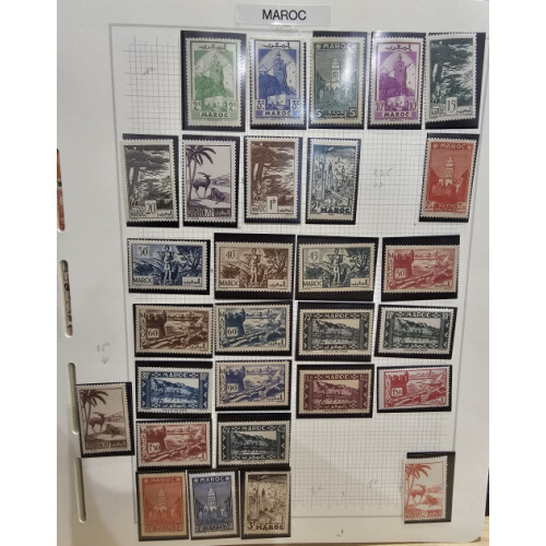 Collection of mint and used range in well filled Lighthouse album on plain leaves for countries Gabon to Tunisia, a wide range of mostly pre-independence issues, strength in Morocco, Indo China and Indian Sett., Moyen Congo, Reunion & CFA surcharges, etc, 100s.