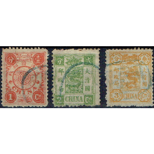 1894 60th Birthday of The Dowager Empress 1ca, 2ca & 3ca each with blue oval cancel, SG 16/18. (3).