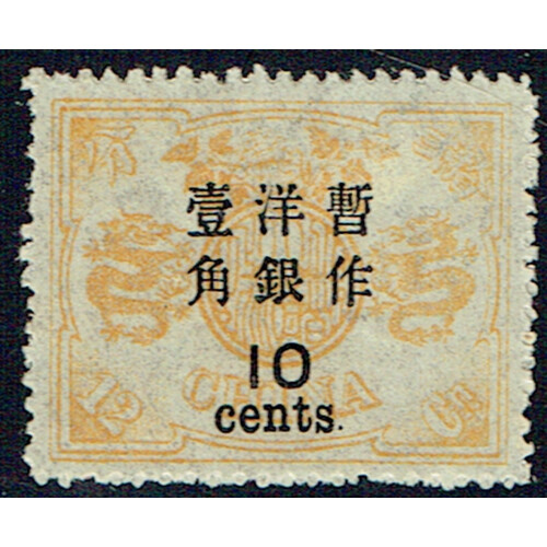1897 New Currency Surcharge 10 Cents on 12ca orange-yellow mint with toned gum, fine appearance, SG 64.
