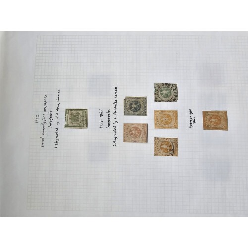 Extensive mainly used mainstream collection in a binder on leaves with 1859-1966, with dozens of defins and commems used, noted 1859 small imperf types, 1862 newspaper, 1863 Eagles, 1866 imperfs, 1871-79 issues imperf, plus bisect on piece 25c orange, 1880 Bolivar issues used, 1888 25c orange rouletted 8 imperf between mint pair, 25c orange imperf mint, 1896 Map set mint plus tete-beche 25c block of 4 mint, 50c rose-red used pairs (each taken as is), misperfs, plenty of defins and commems to 1960s, ideal to fill those gaps!