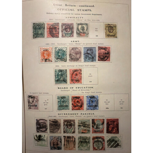A standard postage album partially filled with an abundance of British Commonwealth sets and singles in the period between QV to EDVII stating to be £150,000 cat value with over 4000 stamps, A predominantly used collection noting: A nice GB section with values up to 10s and a nice range of Officials Army officials to 6d and Govt Parcels to 1s. Also has a nice selection of Cape of Good Hope triangles ranging from full margins to two margins up to 1s, A well filled section of Ceylon, 1906 set of Hong Kong to $2, 1923-27 India set to 5r but not to strong in India states, 1900-01 Malaya set to $5 WMK CC, Natal stamps to 10s, And many more shades varieties across the album well worth viewing for avid collector, plenty of room for expansion. (4000+).