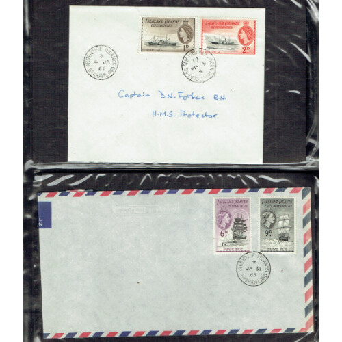 ARGENTINE ISLAND BASE F: 1950s-1970s Good collection of covers written up on leaves some with photos or pictures of the base, the dates in use and handstamps used plus dates evacuated, noted 1957-60 with 1960 First Winter Flight from Argentine Island since 1935,1963 multi franked airmail Deps 1954 ships to 9d, B.A.T. 1960s multi franked airmail cvrs, various cacheted covers, intr lot. (c55).