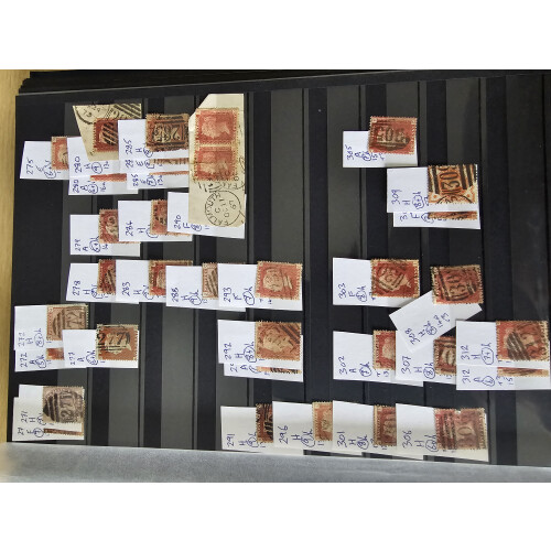 1864-79 ENGLAND & WALES POSTMARKS Approx 750+ 1864-79 1d plates and odd other arranged in office order incomplete from number 2 partly complete through to 987, then code numbers A, B, C, D, E, F & G, etc stamps mainly fine used. STC £2000+.